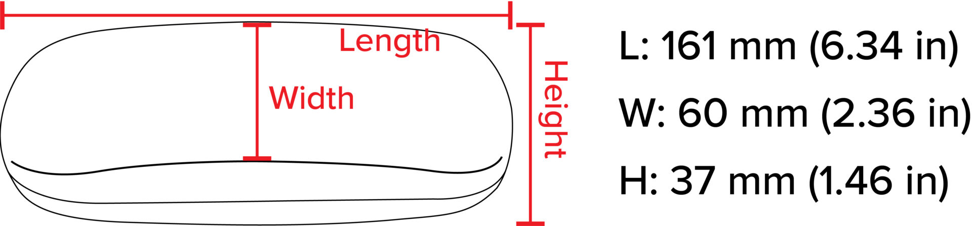 Case Outside Dimensions: 161mm x 60mm x 37mm (6.34 in. x 2.36 in. x 1.46 in.)